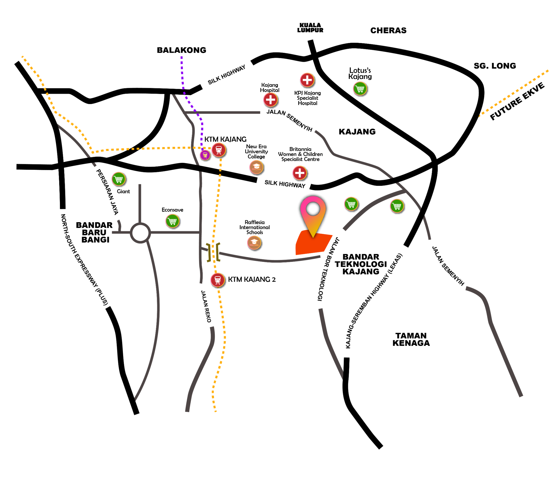 With only 3 mins drive to the nearest KTM, 1 stop away from MRT, you are now able to connect to a vast network of transits, allowing you to travel without the hassle.